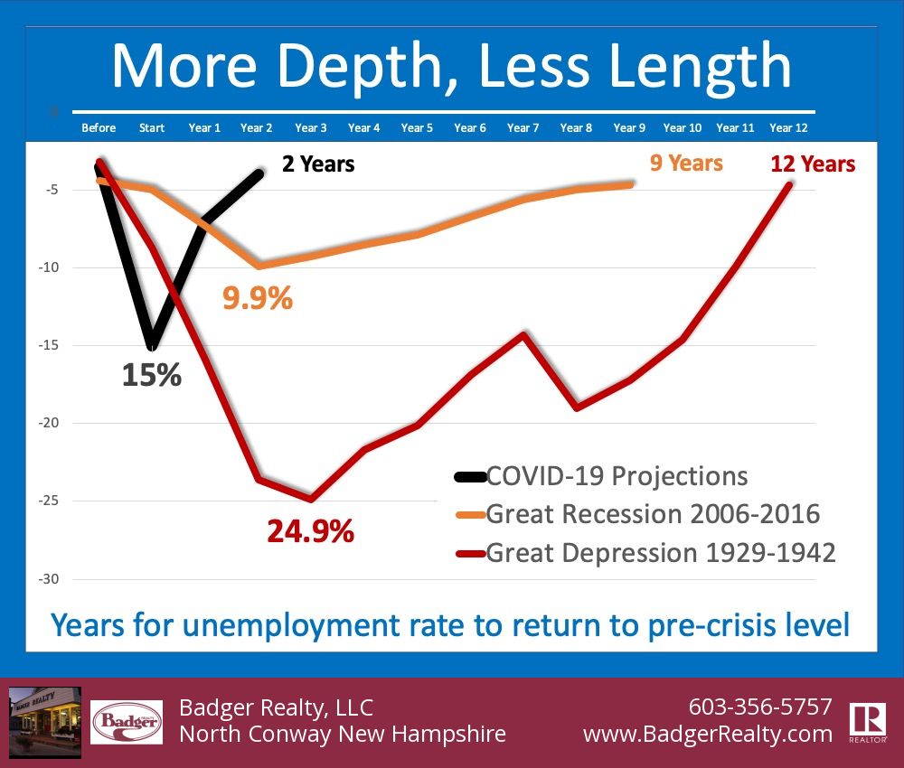 When we compare that to the length of time it took to get back to work during both the Great Recession (9 years long) and the Great Depression (12 years long), we can see how the current timetable is much more favorable.
